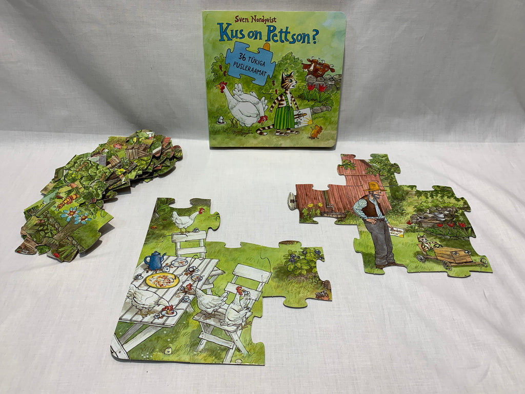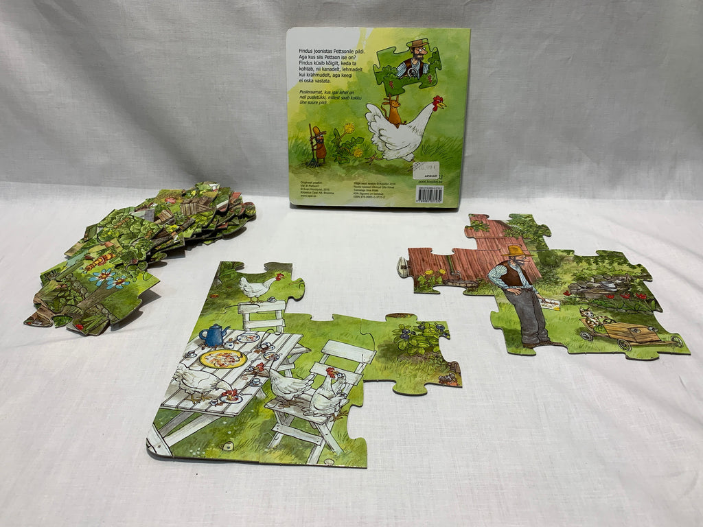 Pettsoni ja Finduse raamat on humoorikas lühida teksti ja detailirohkete illustratsioonidega pusleraamat, mis pakub rõõmu 3- 100a. Kuna lastele meeldib puslet kokku panna tervikuna ja ka ilma raamatuta, siis oleme pusletükid pannud eraldi. Pildid on raamatus ikka kenasti alles. Soovitame vanusele 3+.
